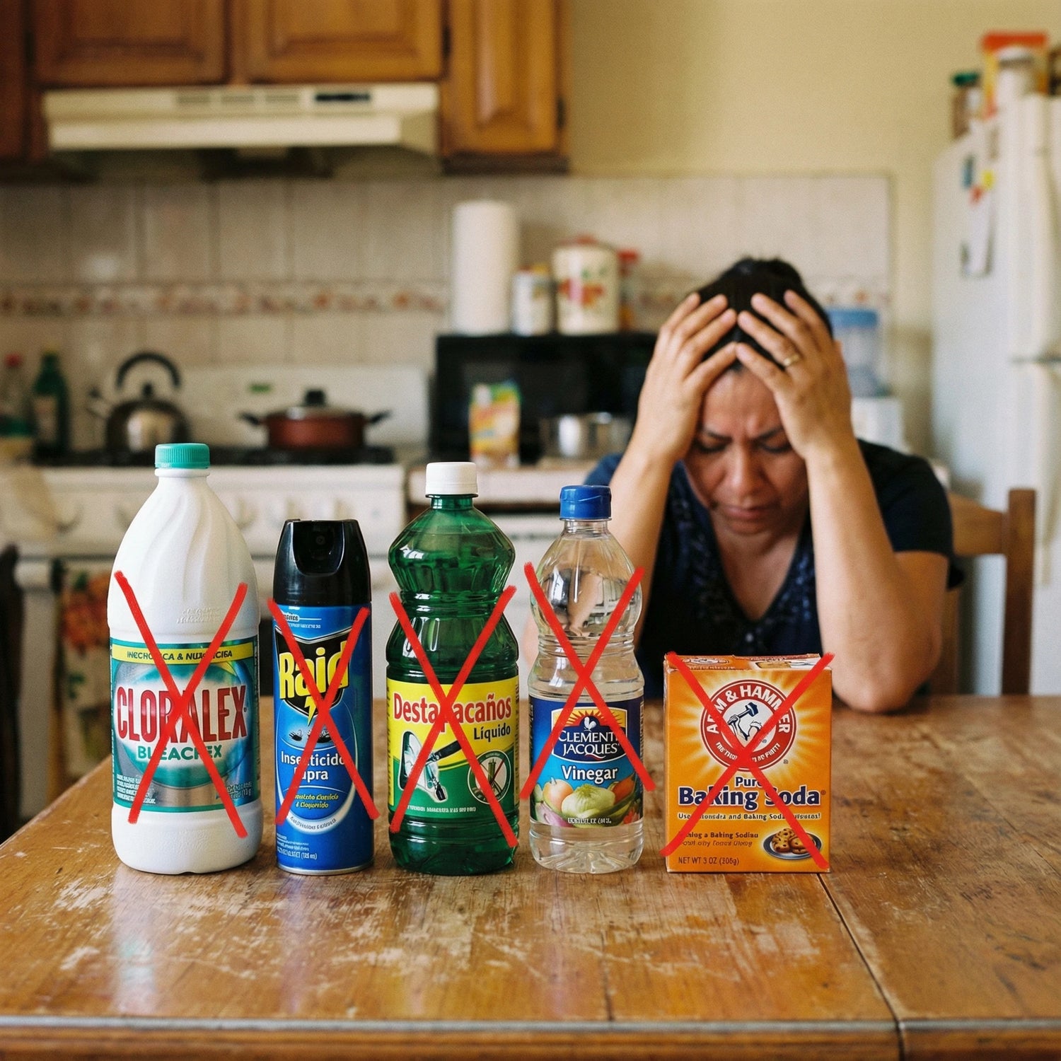 Huele mal, echas cloro. Aparecen mosquitas, sacas el spray. El agua no baja, compras destapacaños líquido. Remedios de internet. Vinagre. Bicarbonato.